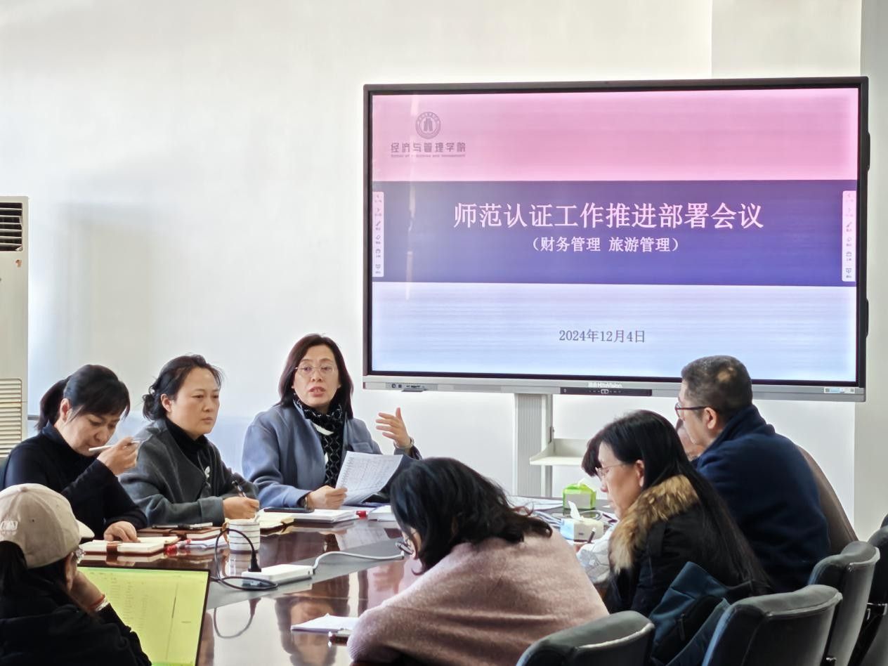 2024年12月4日,yl23455永利集团在第一教学楼513会议室召开了师范认证工作推进部署会议。学院领导班子、财务会计教研室教师、旅游管理教研室教师、学团教师、办公室全体教师共计40余人参加了会议。会议由院长于飞教授主持。