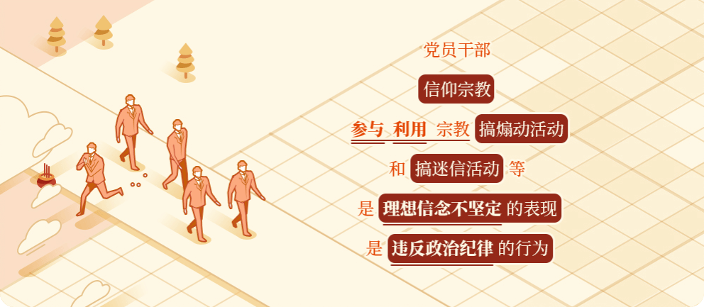 党员干部组织或参加迷信活动,更是理想信念缺失的体现。梳理近年来落马的党员领导干部,仍有人“不信马列信鬼神”——有的长期在家烧香拜佛,有的给自己祖坟、办公室调风水,有的指使行贿人给“大师”捐款。党员干部搞迷信活动绝不是一件小事,会侵蚀共产党人的政治灵魂,也常常与腐败行为相伴相生,必须以严格的纪律予以规制。