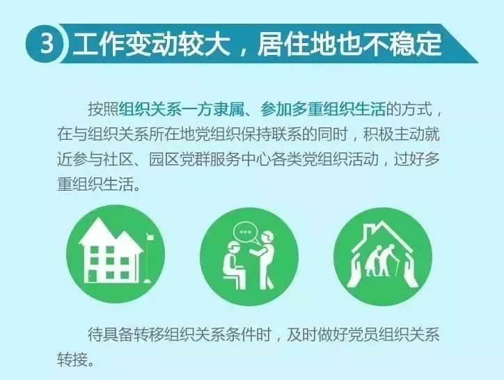 可以将组织关系转入常驻地或户口所在地,在工作变动期间,参考《中国共产党党员教育管理工作条例》中流动党员管理办法,按照组织关系一方隶属、参加多重组织生活的方式,在与组织关系所在地党组织保持联系的同时,积极主动就近参与社区、园区党群服务中心各类党组织活动,过好多重组织生活。待具备转移组织关系条件时,及时做好党员组织关系转接。