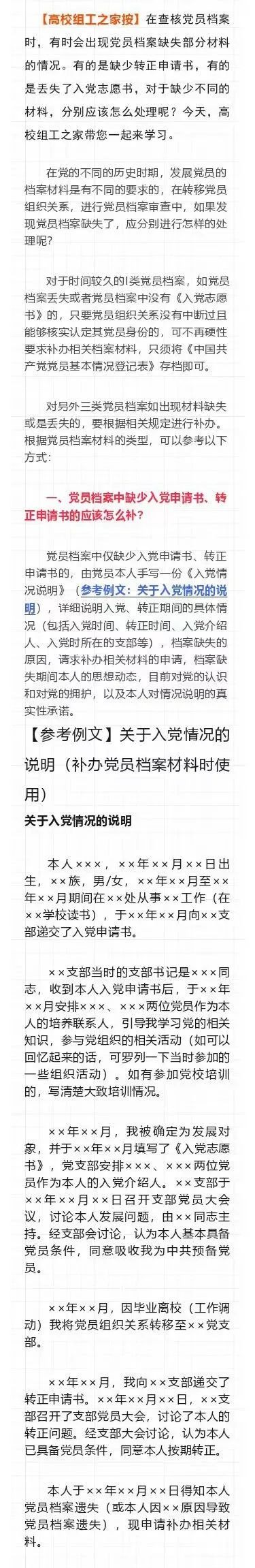 【党务指南】这次把党员档案缺失不同材料的正确处理方法讲清楚了
