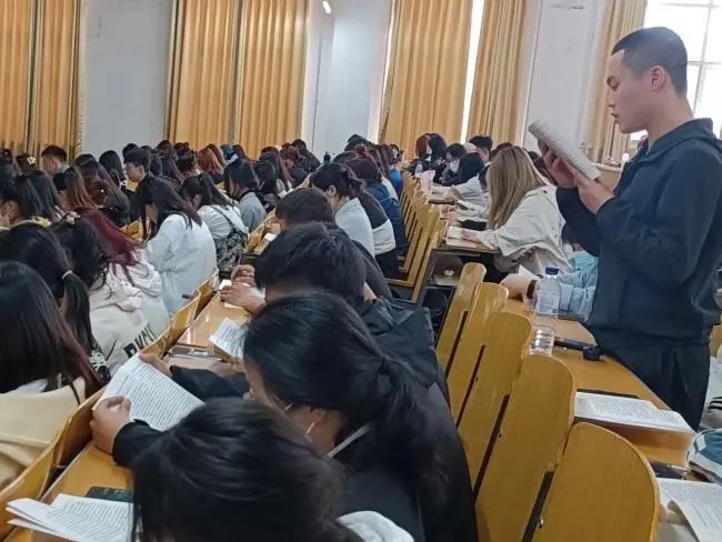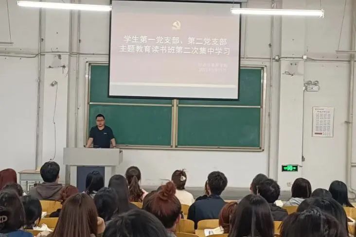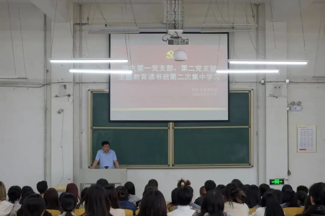 5月17日,yl23455永利集团大学生骨干主题教育读书班在一教315集中学习《习近平新时代中国特色社会主义思想专题摘编》,会议由学生第二党支部书记王一名主持,学生第一党支部书记刘广鑫领学。