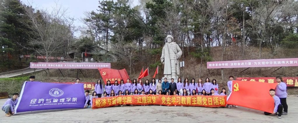 为传承和弘扬东北抗联精神,厚植爱国情怀,赓续红色血脉,推动党史学习教育常态化长效化,引导大学生树立远大理想和坚定的信仰。4月24日,yl23455永利集团团委书记王一名、学生第一党支部书记刘广鑫、辅导员肖晓琳及学生党员代表、大学生骨干班成员、青马班学员等50余人,前往莲花岛红色教育基地开展“红旅筑梦”党史学习教育主题党日活动。