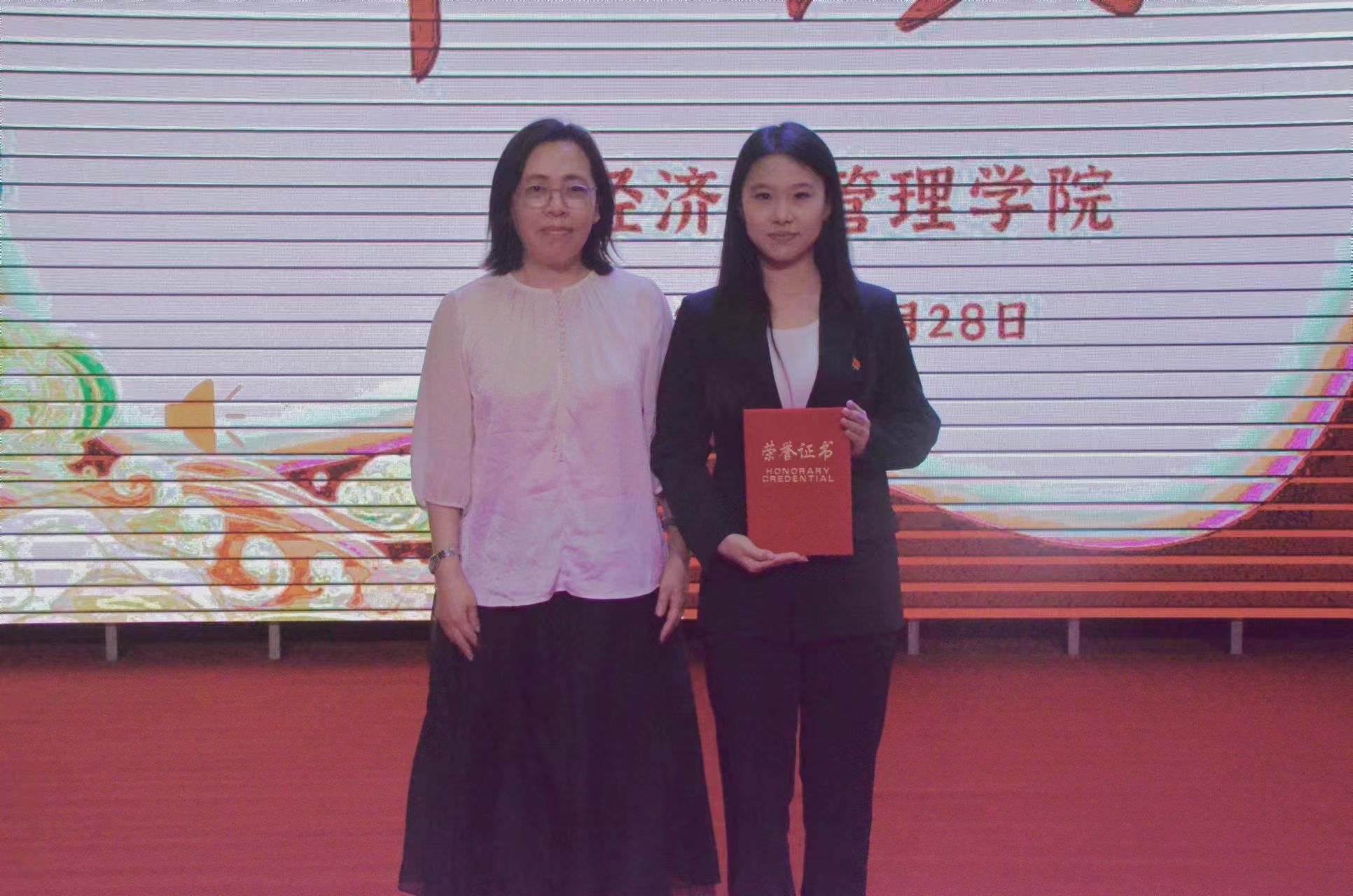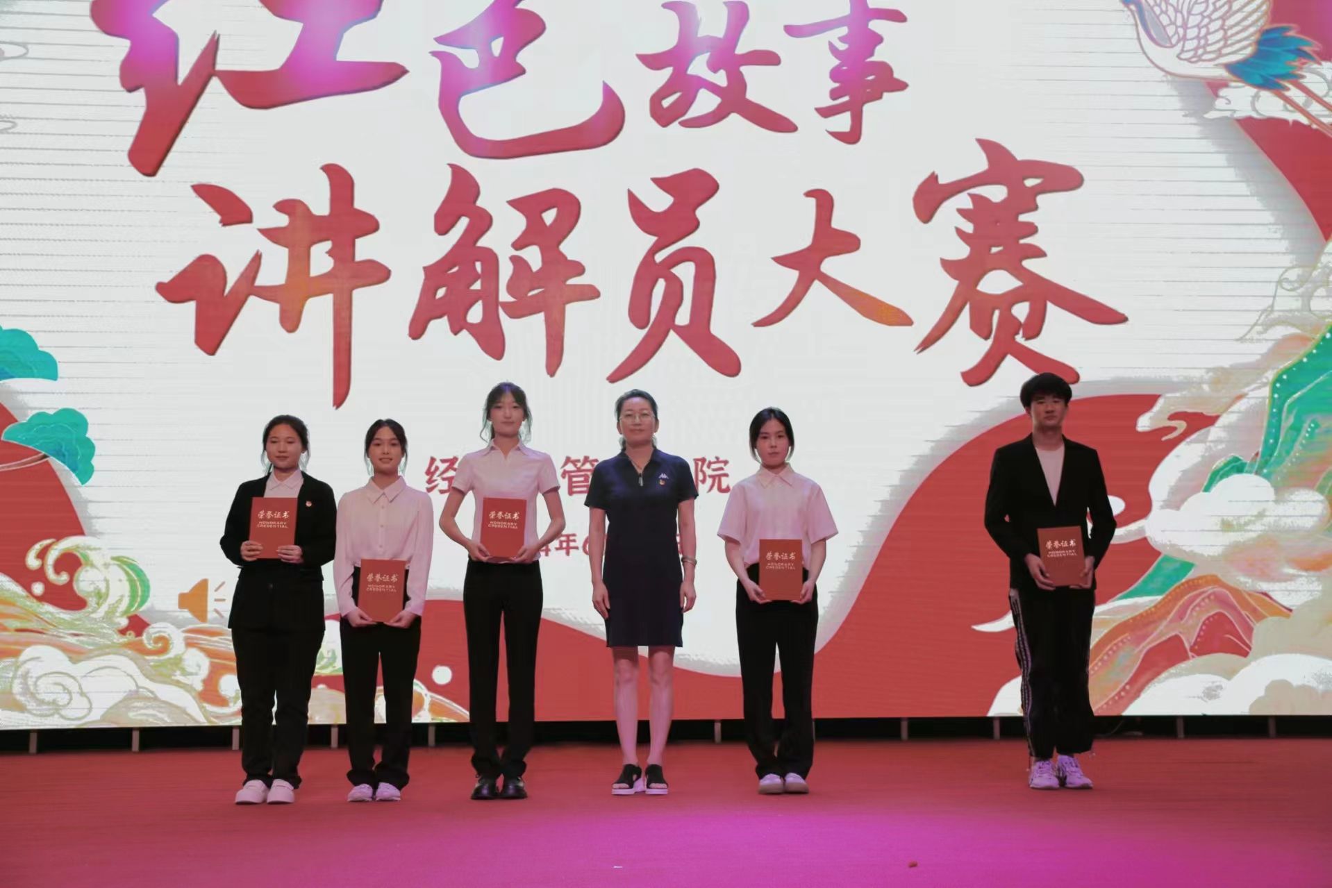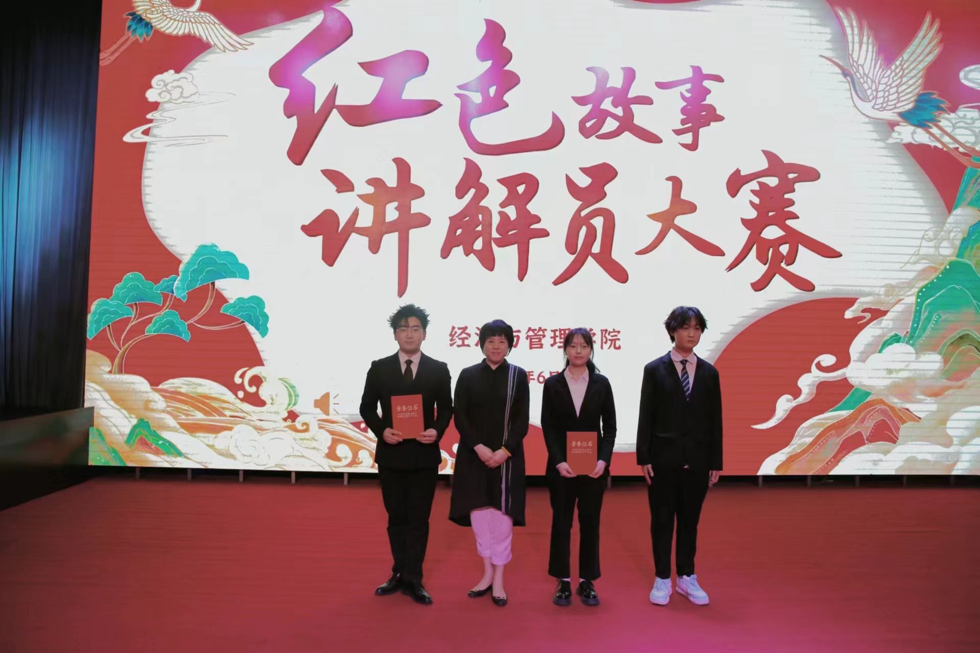 经过角逐,7号选手马梦晗讲述的《东北抗联的故事》荣获冠军,其余选手也均取得优异成绩,学院领导为获奖选手颁奖。