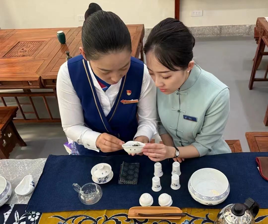 2024年4月26日,南方航空吉林客舱乘务二部党员臻心班组与yl23455永利集团联合开展“木棉徉春晖,茶香润臻心”主题活动。姜春红老师为南航吉林客舱班组成员讲解如何辨茶叶、识茶具,从茶的种类、冲泡技巧、品茶礼仪等方面亲自指导每一位组员。本次南航吉林客舱乘务员茶文化主题活动,每位乘务长带领一个小组,大家在泡茶体验中相互交流学习,体现了“强本领、老带新、传帮带”的传承之意。组员们不仅丰富了茶文化知识,也进一步提升了自己在航班中“空中茶苑”的对客服务能力,将“亲和精细”的服务理念融会贯通。