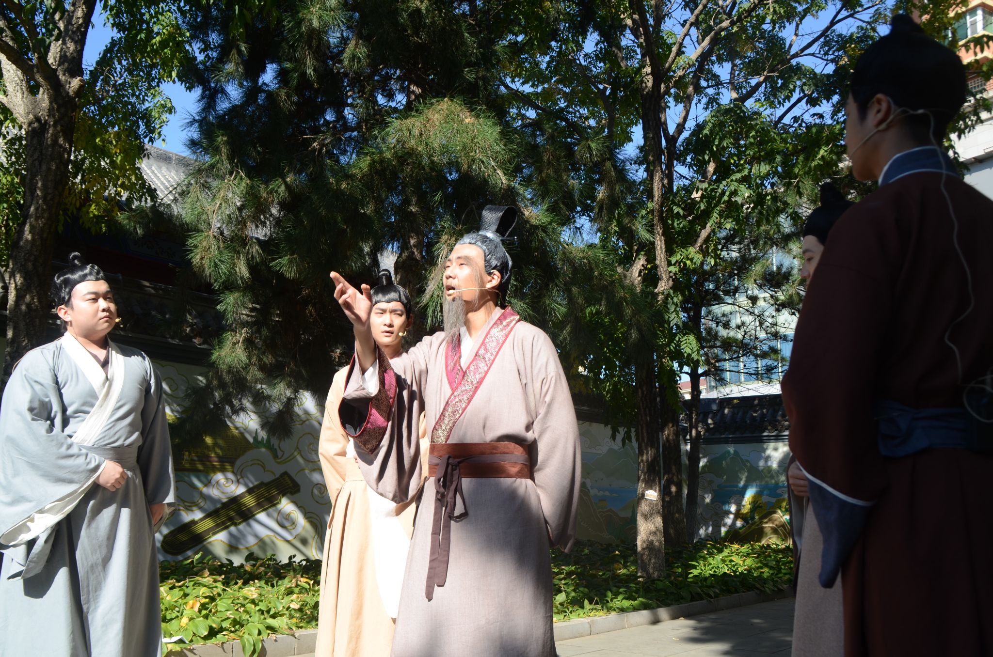 随后,同学们跟着讲解员的步伐来观看情景剧。情景剧《孔子的故事》再现孔子杏坛讲学等情景。现场观众置身于古风古韵的布景中,沉浸式体会孔子的理想追求和思想内涵。更好的帮助同学们培养个人品德,增强社会责任感。