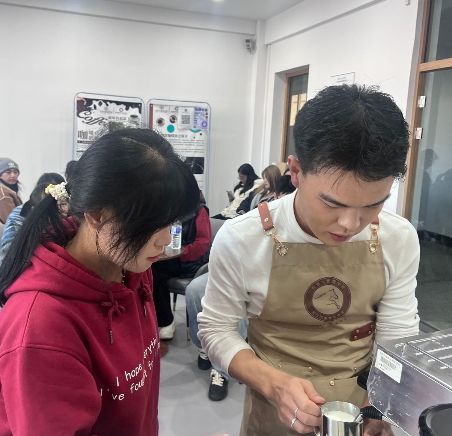 活动开始前,由社团负责人高兴同学对各学院的同学表示欢迎,为同学们讲解本次活动大概流程,讲解了咖啡的历史与起源并向同学们展示了咖啡拉花样品。