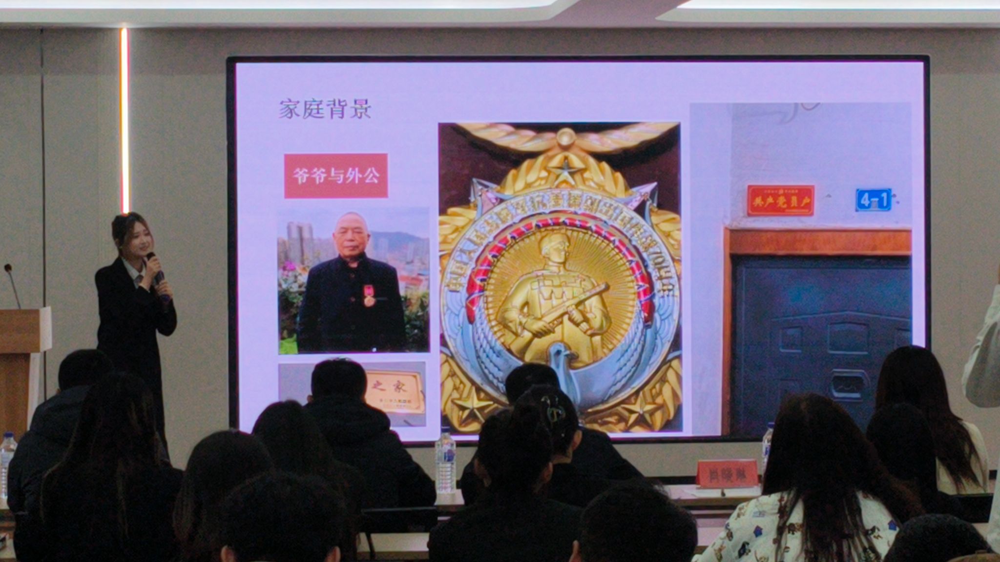 财务管理2441班岳彦伶倾心为大家讲述了自己的红色家庭,她生长在光荣之家里,从她身上我们看到了国家和社会对军人及其家属为国防和军队建设所做贡献的认可与尊重。