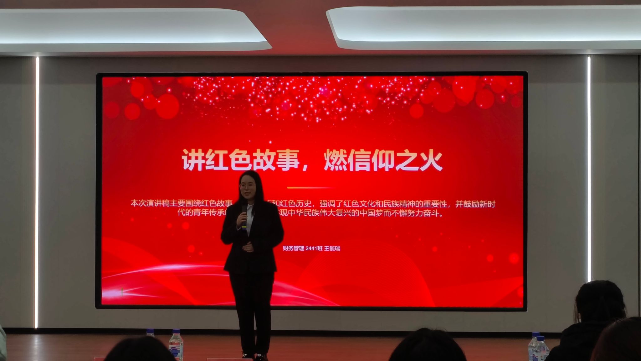 财务管理2441班王毓瑞围绕“讲红色故事,燃信仰之火” 这一主题,强调通过讲述中国共产党及其领导下的革命斗争历史中的感人故事,来激发人们特别是年轻一代的爱国情怀和坚定信仰。