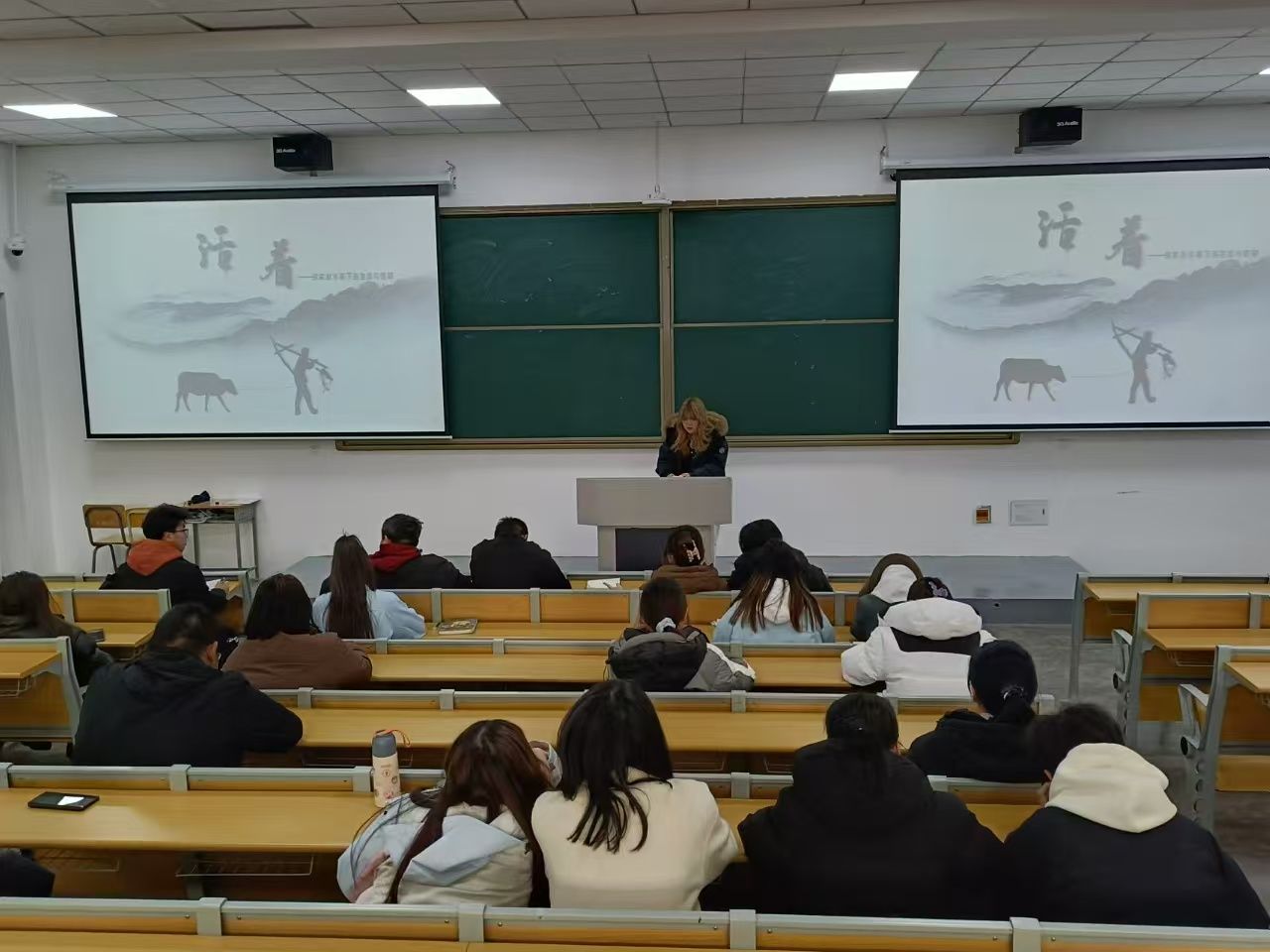 《活着》一书深受书友们的青睐,在活动中,旅游管理2441的徐佳艺同学和市场营销2441的刘莹同学先后为我们分享了对这本书的读后感受,让我们更加深刻的了解这部余华笔下的时代“洪流下生命的悲歌与欢歌”,它不仅深刻地反映了生命的顽强与无奈,更是揭示了在那个动荡不安、命运无常的时代背景下,人在命运的摆布下虽渺小无力,但活着本身就是一种力量,一种对生命尊严的坚守。通过书友们的介绍让我们明白,无论生活多么艰难,只要活着,就有希望,哪怕这希望极其渺茫,也是支撑生命继续前行的动力。