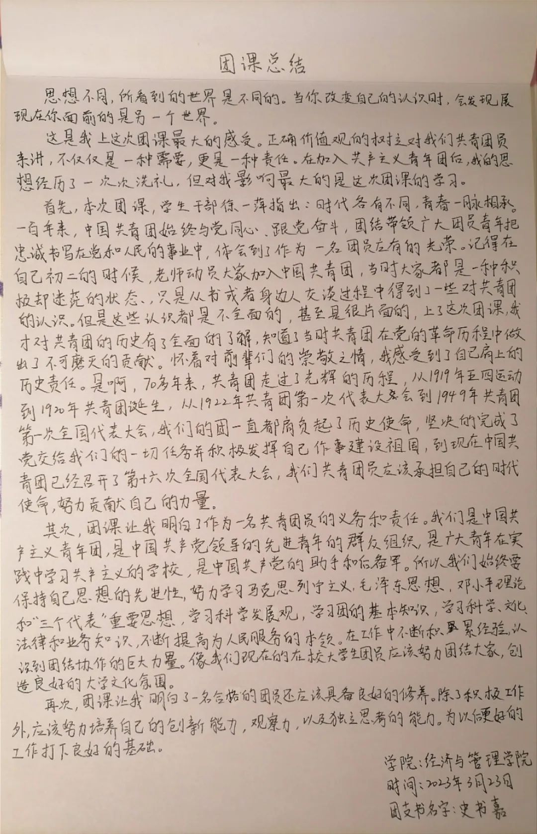 本次团课,徐一萍同学说:时代各有不同,青春一脉相承。一百年来,中国共青团始终与党同心、跟党奋斗,团结带领广大团员青年把忠诚书写在党和人民的事业中。