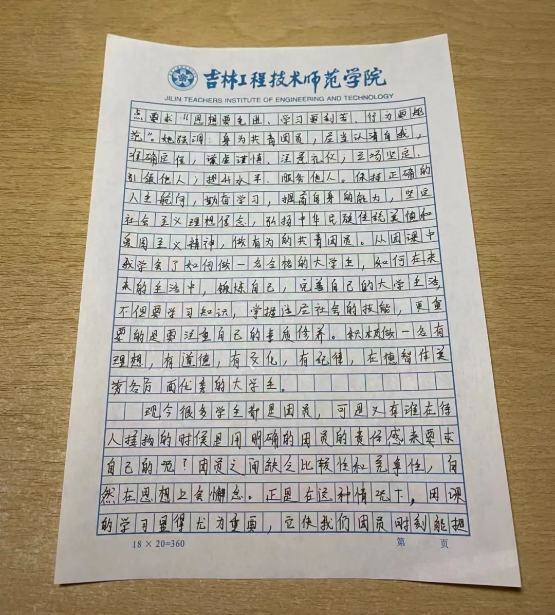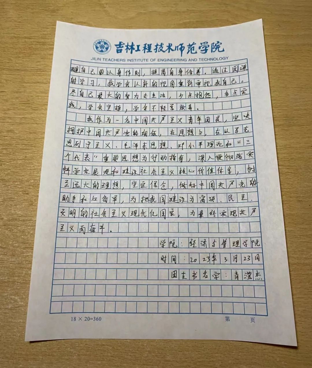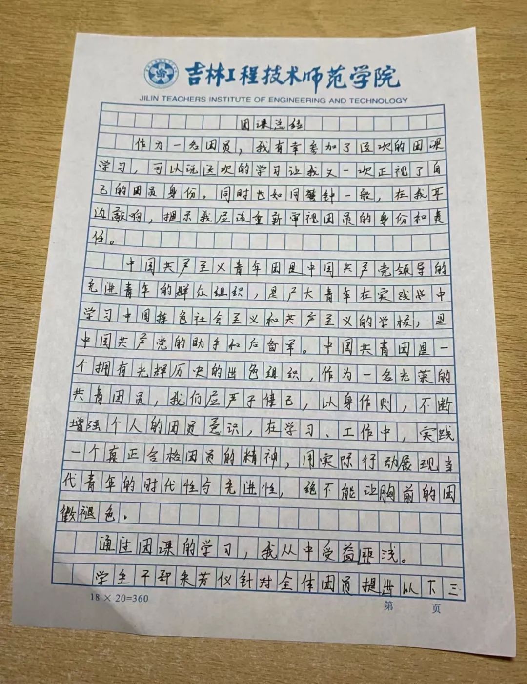 她说,身为共青团员,应当认清自我,准确定位;谦虚谨慎、注意礼仪;立场坚定、引领他人;提升水平、服务他人。保持正确的人生航向,勤奋学习,提高自身的能力,坚定社会主义理想信念,弘扬中华民族传统美德和爱国主义精神,做有为的共青团员。