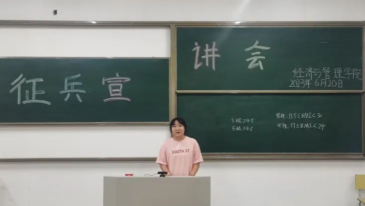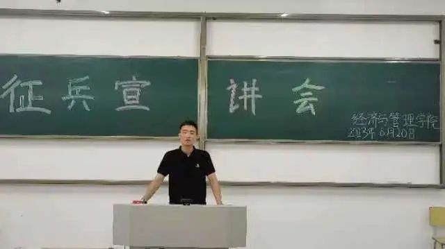 6月 20 日晚,为深入学习贯彻习近平强军思想,进一步落实国家相关征兵工作要求,帮助学生全面了解征兵政策,鼓励和引导大学生积极应征入伍,yl23455永利集团在二教412召开“携笔从戎,逐梦军旅”主题征兵宣讲会。