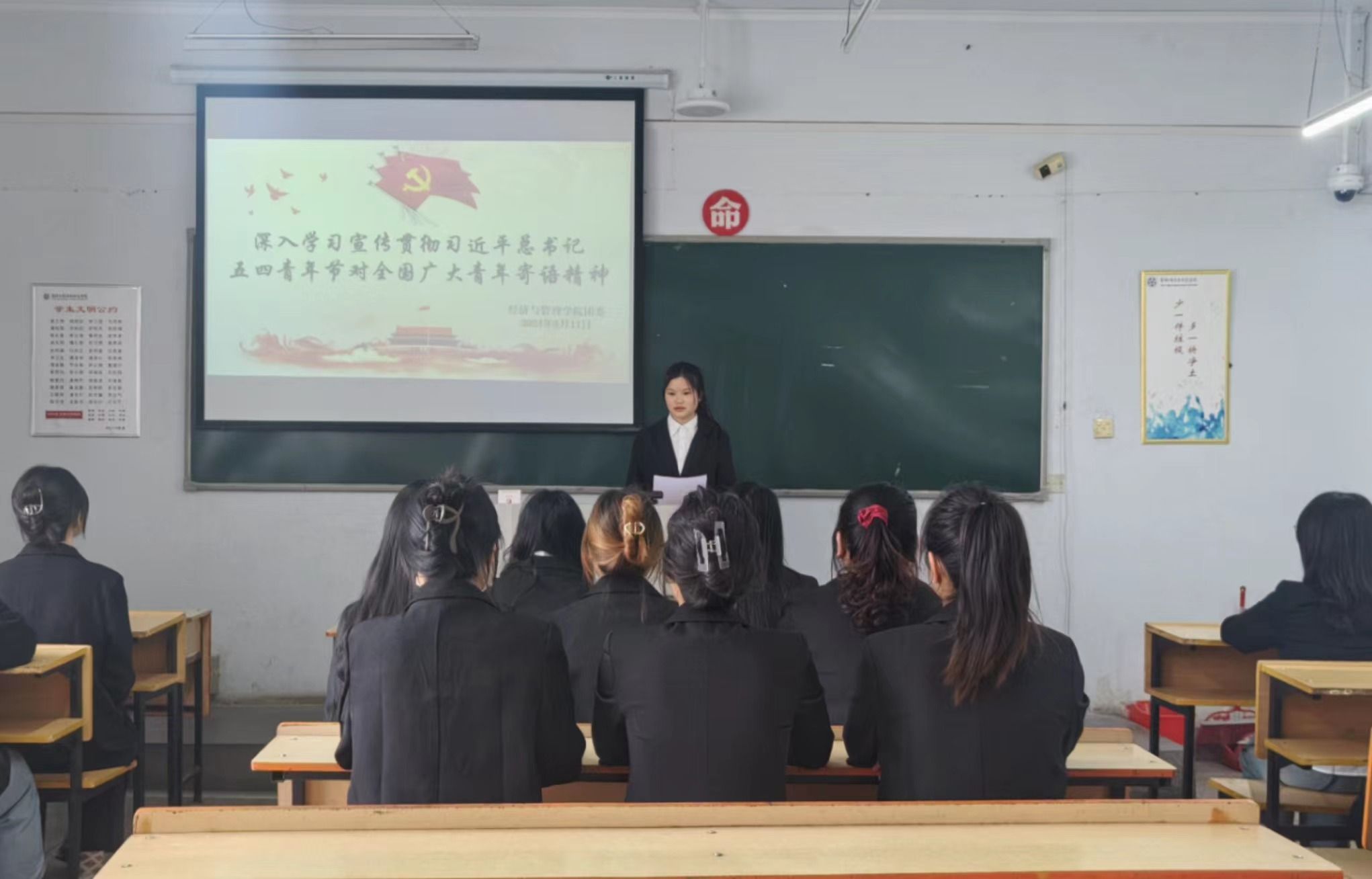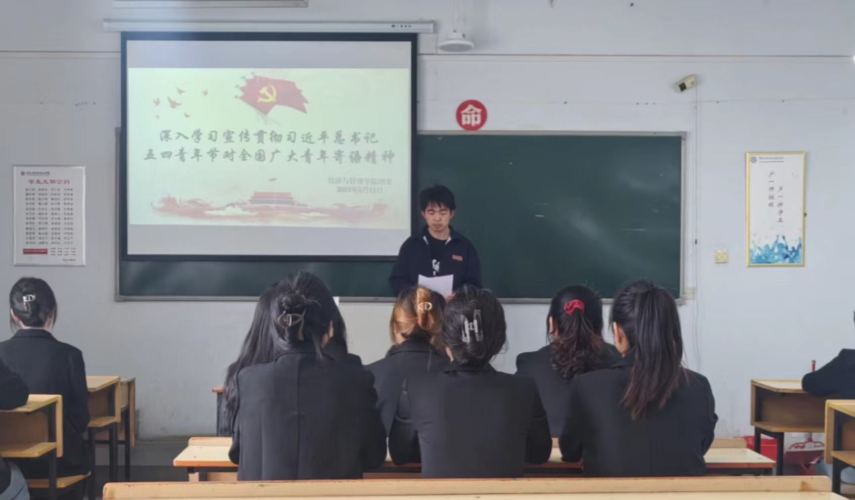 在五四青年节到来之际,中共中央总书记、国家主席、中央军委主席习近平代表党中央,向全国广大青年致以节日祝贺和诚挚问候,习近平总书记的亲切关怀和殷切嘱托在我院全体师生中引起热烈反响,大家纷纷表示,要牢记嘱托,坚定不移听党话、跟党走,继承和发扬五四精神,争做有理想、敢担当、能吃苦、肯奋斗的新时代好青年,用奋斗谱写新时代更加精彩的青春华章!为此,5月11日下午,我院团支部在一教518组织开展深入学习宣传贯彻习近平总书记五四青年节对广大青年的寄语精神主题团日活动。