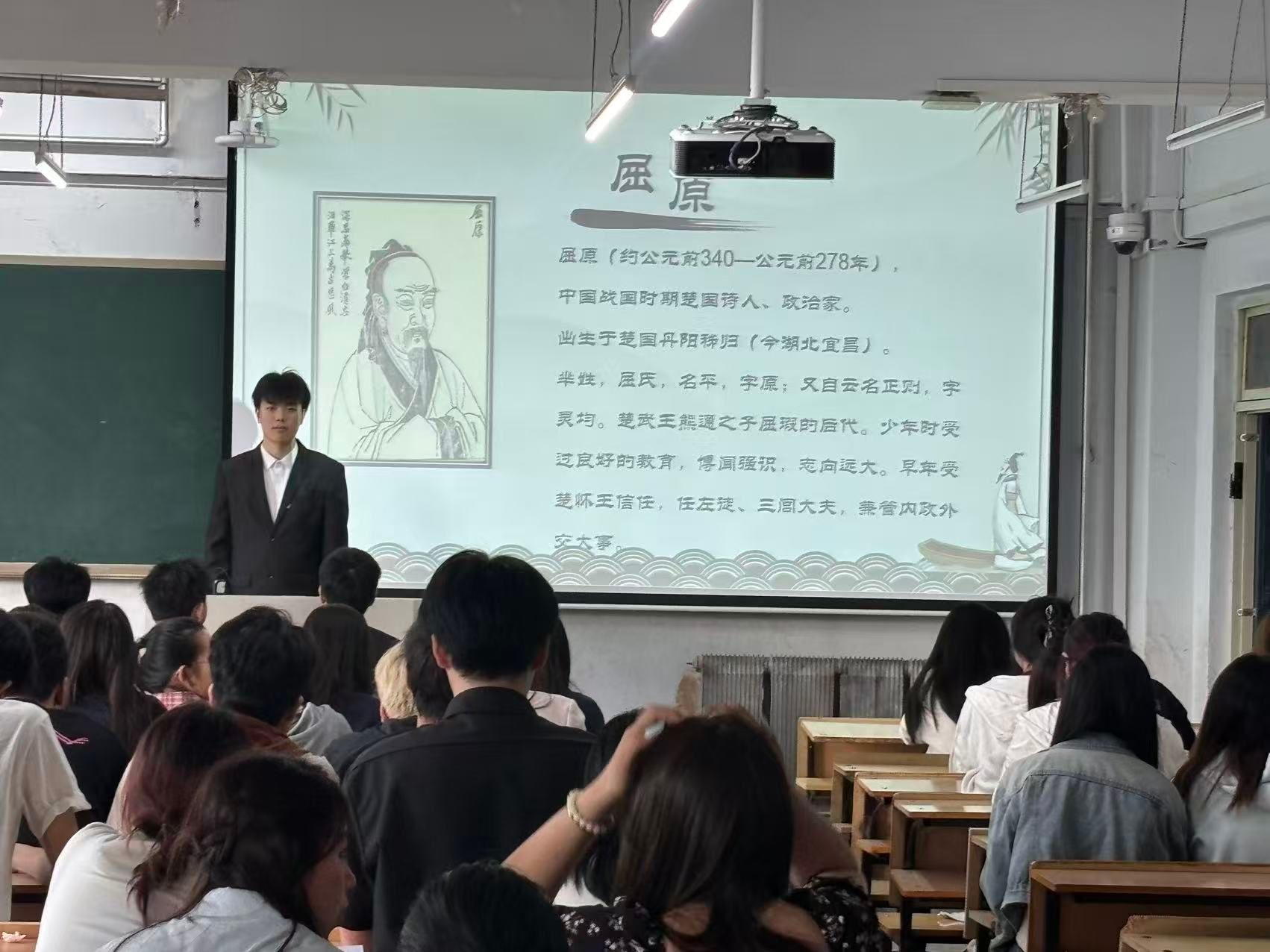 谈及屈原之死,现场气氛凝重又激昂。屈原之死,让“爱国”二字有了沉甸甸的重量。他的精神穿越汨罗江的波涛,成为中华民族的文化符号。每当我们诵读他的诗篇,都能感受到那种宁折不弯的气节,这提醒我们,爱国不仅是情感,更要在关键时刻,有坚守信念、捍卫大义的勇气。