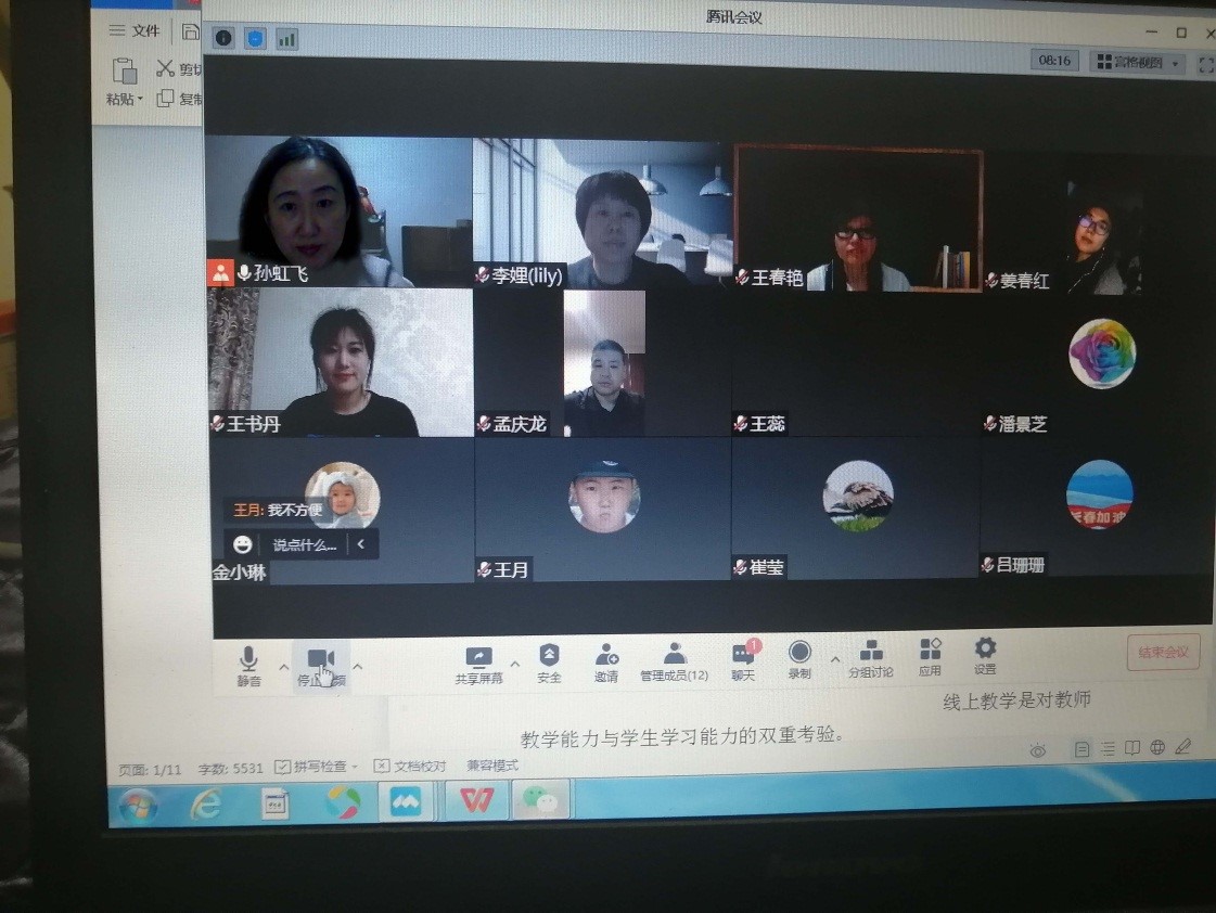 崔莹老师结合目前疫情防控情况,以学生志愿者的榜样力量开展课程思政;通过疫情期间生活与学习的点滴互动,给予学生更多的辅导和关心,达到与学生共情。此外老师们结合在线视频教学的技术支撑条件、不同在线教学平台的特点、功能应用、在线教学遇到的问题等进行了充分的交流。