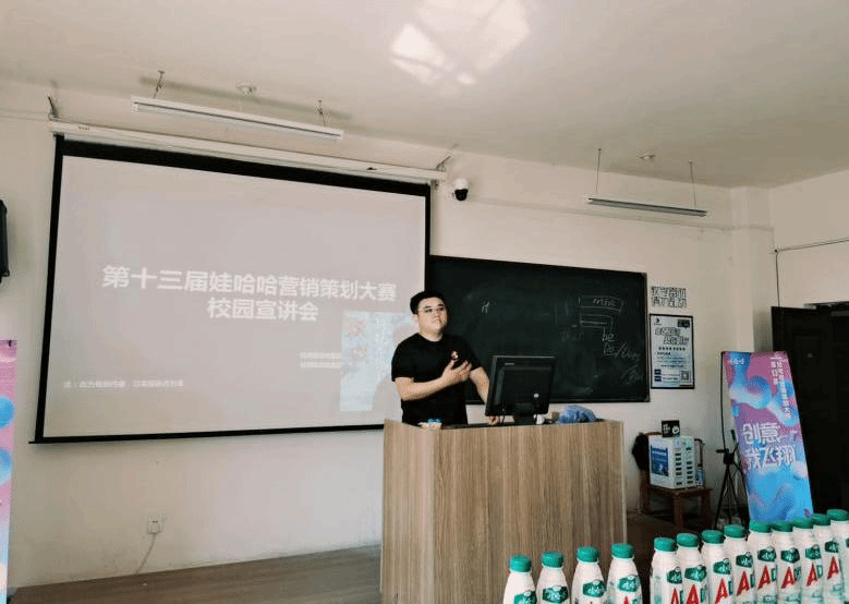 随后,娃哈哈集团吉林省分公司市场部经理王续东作为本次活动的主讲人对比赛内容做了详细的介绍。哇哈哈集团主办的营销大赛分为校内赛、省赛和全国总决赛几个阶段,大赛要求参赛团队以企业真实的产品营销为任务进行市场调研、营销策划、销售和品牌宣传实施等活动,在实际的营销背景下提出策划方案,以创新思维形成有价值的成果。
