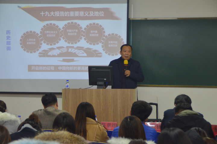 为深入学习贯彻党的十九大精神,进一步统一思想、明确任务,提高我院学生干部的责任意识,增强自我教育、自我管理、自我服务的能力,总结交流近年来我院学生干部在工作、学习、生活中的经验,提高我院学生干部的思想政治素质、培养组织协调能力,工商管理学院特举办学生干部系列培训活动。此次培训得到校领导以及院领导的关心、重视和大力支持,11月24日晚,培训启动仪式于高新校区109教室隆重启动,校党委常委、党委副书记陈景翊教授,工商管理学院党总支书记孔令海,工商管理学院党总支副书记郝松林出席本次活动。