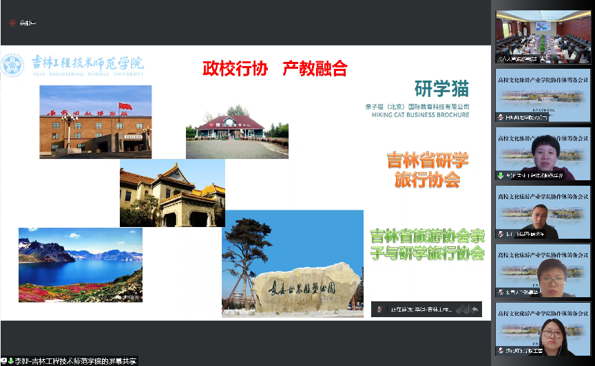 首先,李娌教授对学校的发展历程和旅游管理专业近年来专业建设、学科发展及师资队伍建设等情况进行了介绍。我校旅游管理专业成立于2001年,经过20年的持续建设,专业先后于2019获评旅游管理本科评价A等级,2021年获评省级一流专业建设点。旅游管理专业师资力量雄厚,9名教师获博士学位,60%专业教师具有高级职称。近年来,专业通过与“研学猫”“吉林省研学旅行协会”等行企的密切合作,初步形成了“政校行企 融通协作”的良好局面。