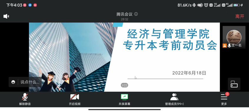 最后,陈昊宇书记在会上为大家阐述了专升本考试的重要性,介绍了2022年专升本考试形势,为学生明确了复习方向。提醒同学们,专升本没有捷径可走,只能依靠个人的努力,所以在接下来的时间里一定要脚踏实地,把备考的课程复习好。并且指出,专升本是提升学历、提高竞争力的重要通道,有利于个人长远发展。希望同学们以更加积极的状态、更加饱满的精神迎接专升本考试的到来。最后陈书记叮嘱同学们调节好生活和作息,注意劳逸结合,勉励同学们把握机遇,坚定信念,希望每一位同学都能实现自己的青春梦想。