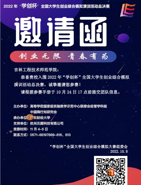 “学创杯”全国大学生创业综合模拟比赛属于教育部认定的国家级大学生A类赛项,已持续举办九届。“学创杯”大赛由创业计划书和创业之星平台运营两部分构成,赛事侧重于提升大学生创业团队初创企业运营管理能力。通过校赛及省赛层层选拔,我院团队在宋晓杰、李南、白秀娜、秦彩萍、高泽5位教师的精心指导下,共获得省级特等奖2项,省级一等奖1项,省级二等奖3项,省级三等奖5项的好成绩,其中我院2支团队分别以吉林赛区选拔赛主体赛道及营销专项赛道小组第一名的成绩入围全国总决赛,成为包括吉林大学在内的吉林省六所晋级全国总决赛的学校之一。本次总决赛由高等学校国家级实验教学示范中心联席会经管学科组、中国陶行知研究会、广东财经大学等单位共同举办,共有来自全国各省、市、自治区的340支本科、高职院校代表队参赛,我院2支团队成员经过6个赛季,8个小时的奋力拼搏,最终纷纷斩获国家二等奖!