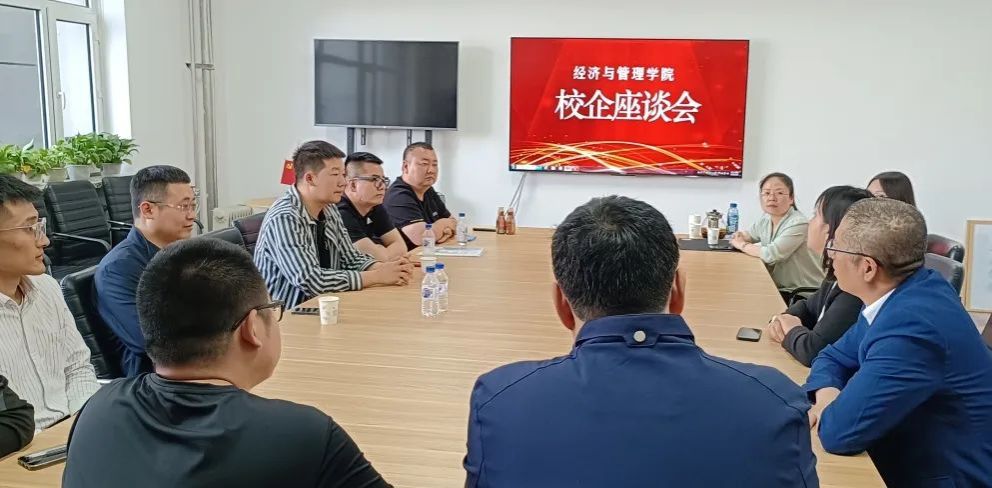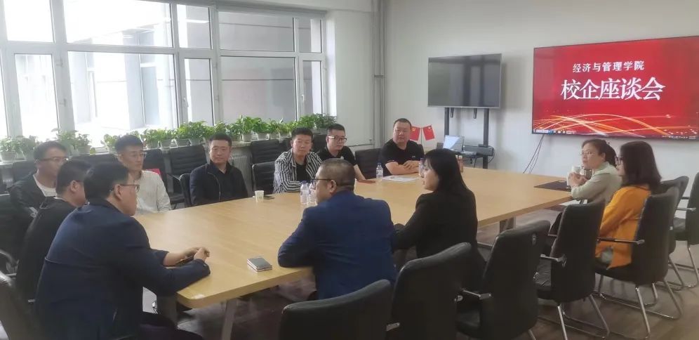 yl23455永利集团副院长李南、党委副书记陈昊宇、团委书记王一名、财经系主任刘春明与北京指南针科技发展有限公司(上市)、吉林立安信息技术咨询服务有限公司、大惠企业(集团公司)等企业代表亲切座谈。