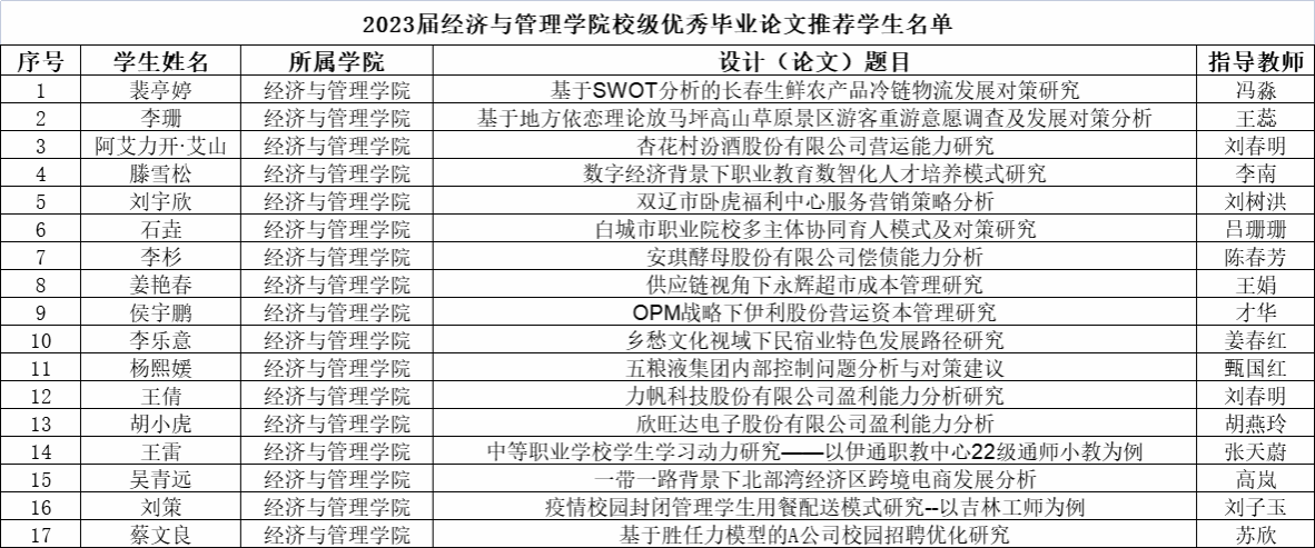 2023年6月14日,yl23455永利集团学术委员会对2023届712名本科毕业生论文成绩进行审核,最终确定毕业论文成绩优秀43人,良好338人,中等286人,及格44人,不及格1人。并在优秀论文中推荐17篇论文为校级优秀论文。
