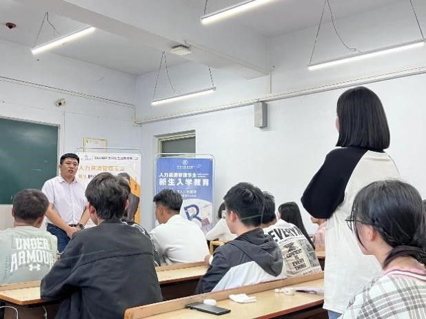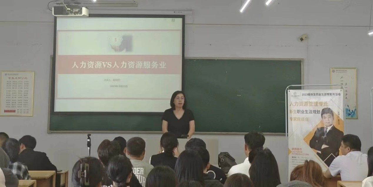 撑起梦想的翅膀,飞向辽阔的天空。新学期伊始,yl23455永利集团人力资源管理专业为23级人力资源管理专业新生、以及22级大类分流人力资源管理专业新生举办了入学教育及职业生涯规划专家座谈会。此次会议于2023年9月22日,在第一教学楼518教室举行,参会人员有yl23455永利集团于飞院长、李南副院长、外聘企业导师戴贺同总经理、人力资源管理专业刘慧姝主任,以及人力资源管理专业教研室全体教师。