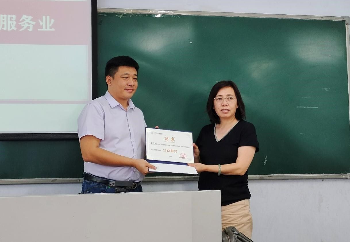 此次会议特聘国家高级人力资源管理师、才库®猎头创始人、资深猎头顾问、吉林省大学生就业创业指导专家、吉林省人力资源服务行业协会理事、高级人才寻访专业委员会主任戴贺同总经理,为人力学子做职业生涯规划的相关指导。于飞院长在会上隆重为其颁发外聘证书,特聘戴贺同总经理为人力资源管理专业的企业导师。