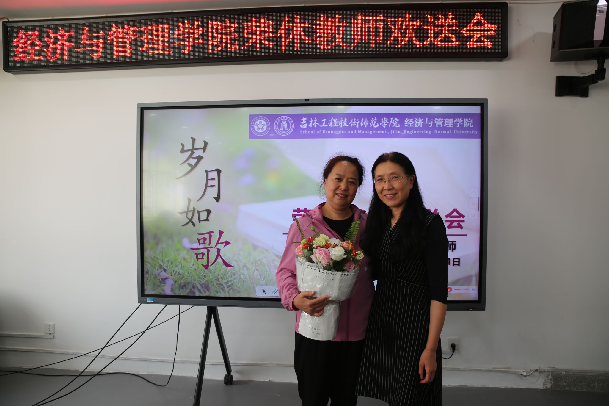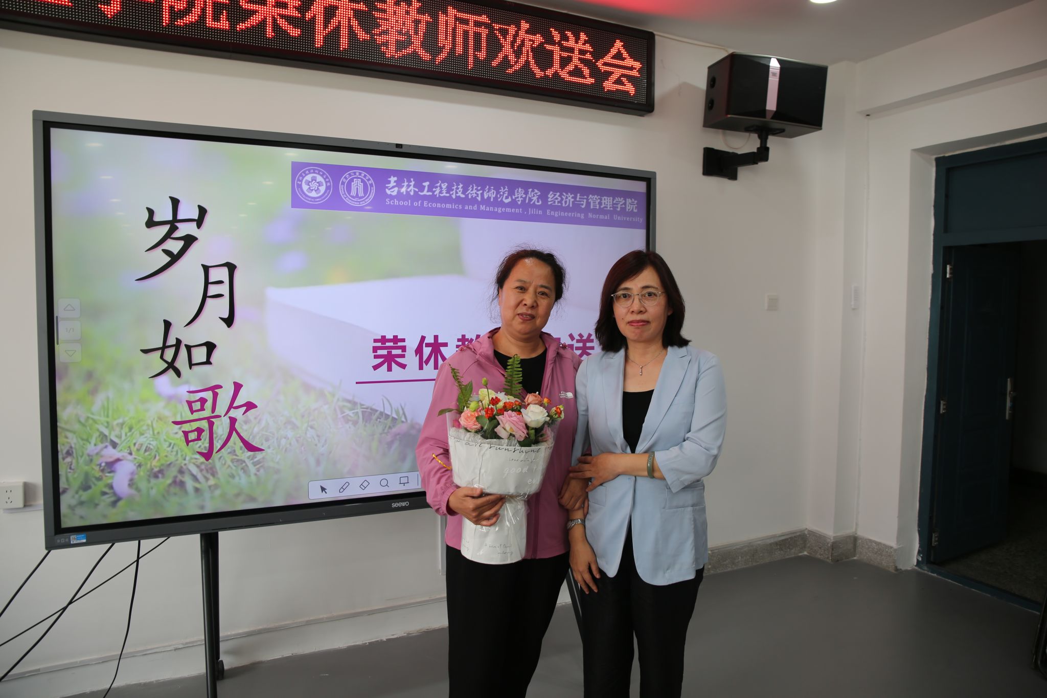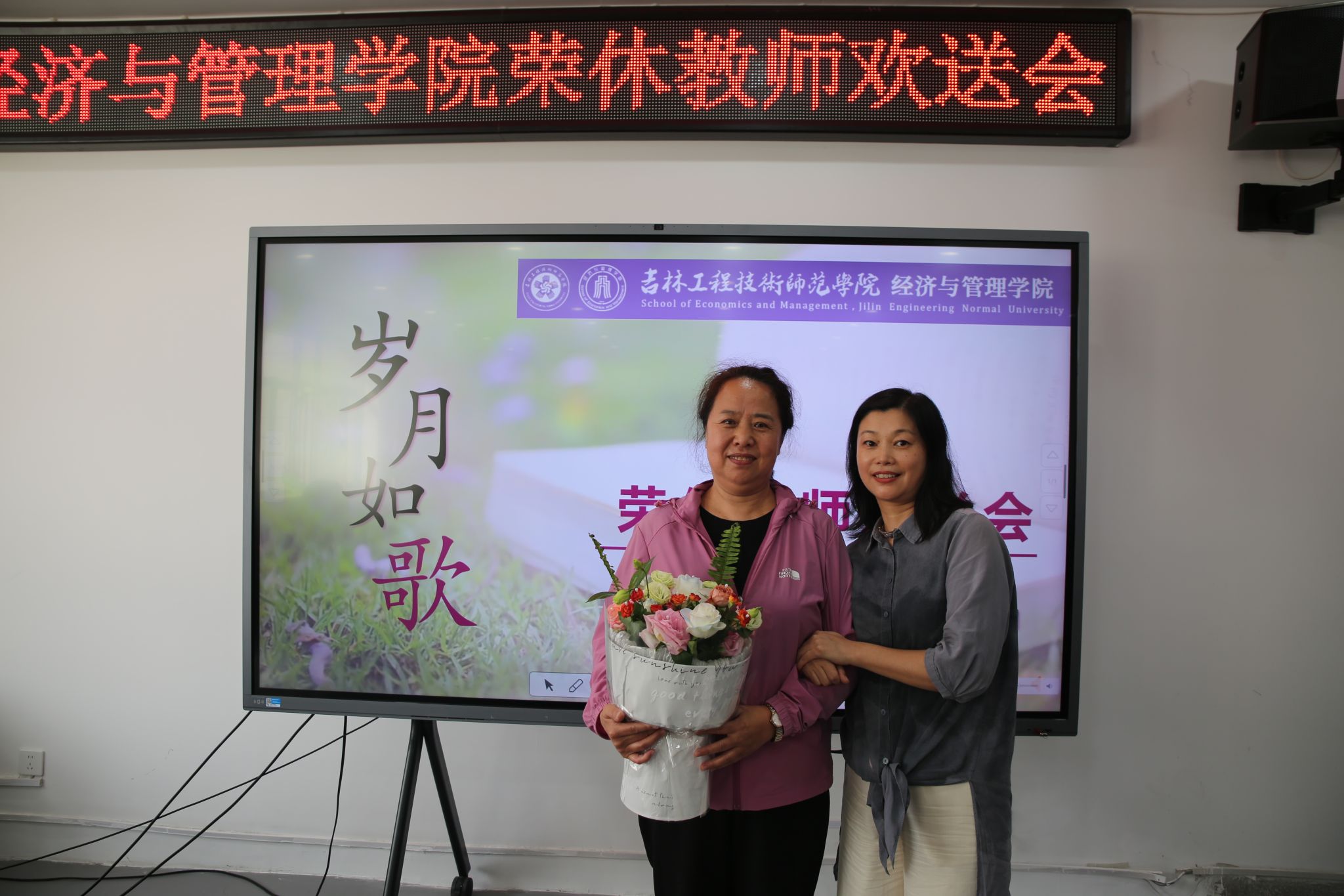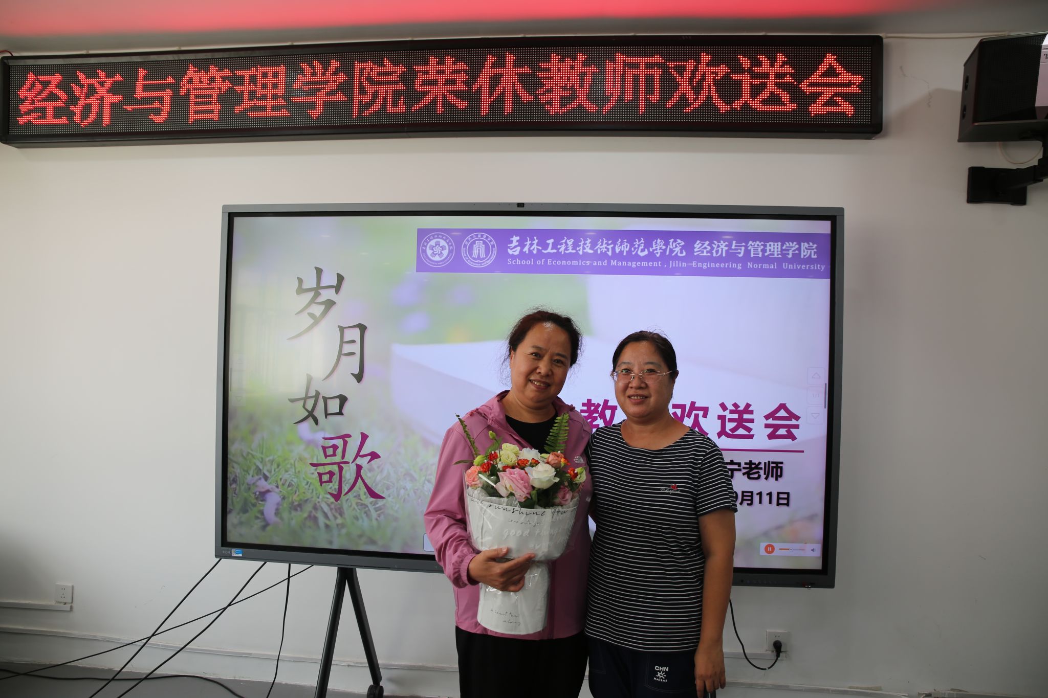 随着音乐旋律的响起,教师代表才华老师为梁亚宁老师献上了鲜花,对梁亚宁老师多年来的孜孜不倦、默默奉献表示感谢。