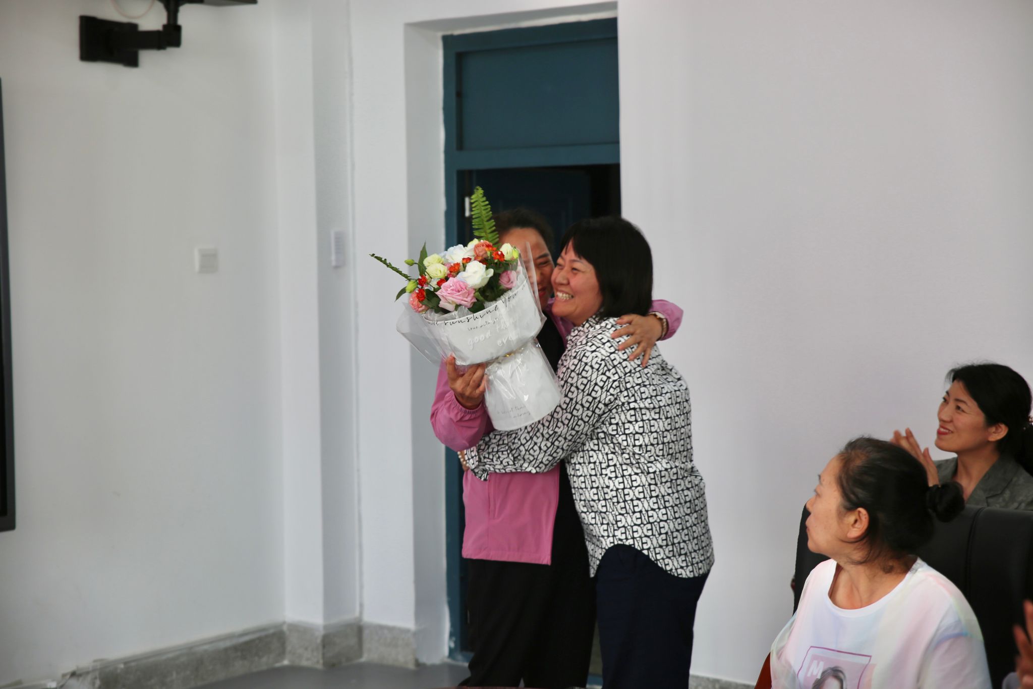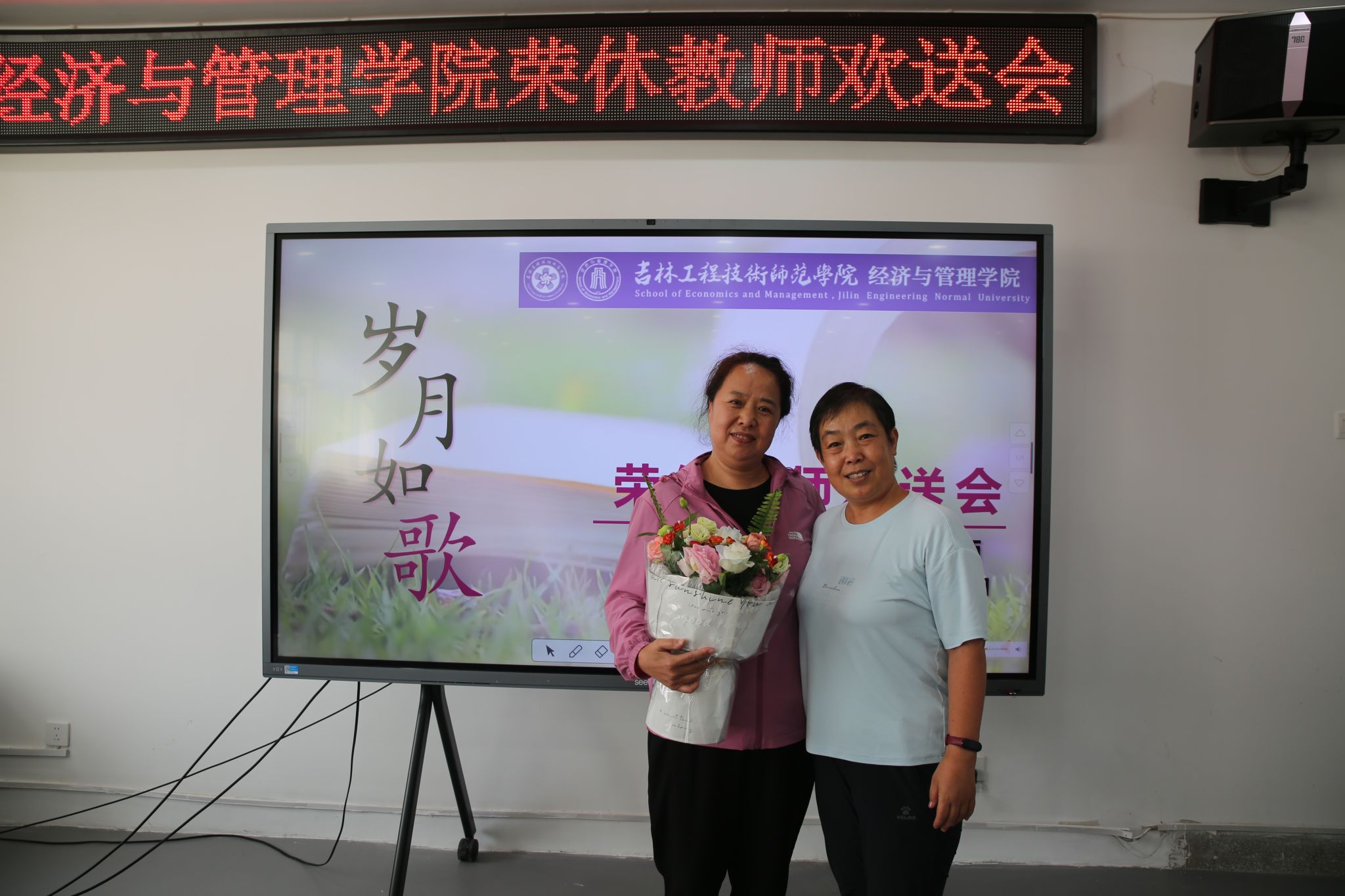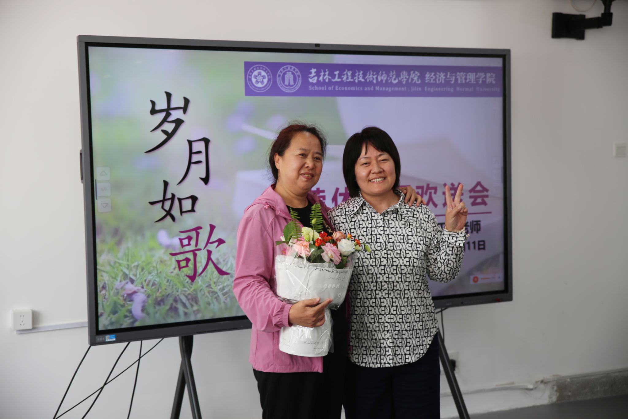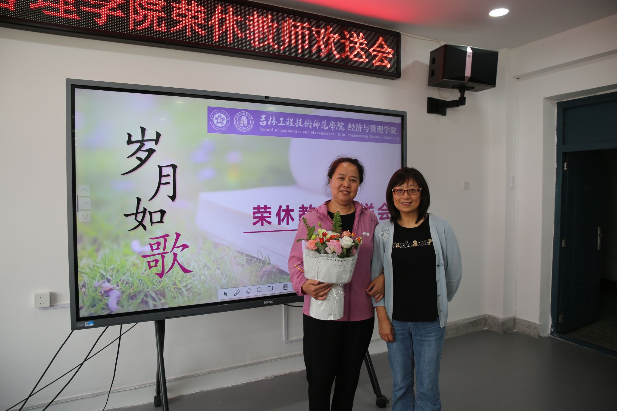 随着音乐旋律的响起,教师代表才华老师为梁亚宁老师献上了鲜花,对梁亚宁老师多年来的孜孜不倦、默默奉献表示感谢。