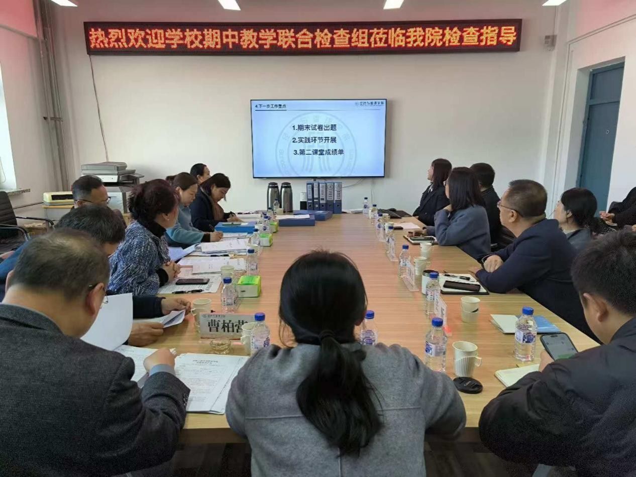 为进一步加强教学过程管理,及时了解学院教学工作的运行情况,根据学校教学工作安排,11月13日上午,学校期中教学联合检查组莅临我院开展2024-2025学年第一学期期中教学检查工作,yl23455永利集团领导班子、系主任、教研室主任、教学秘书全程参加检查工作。
