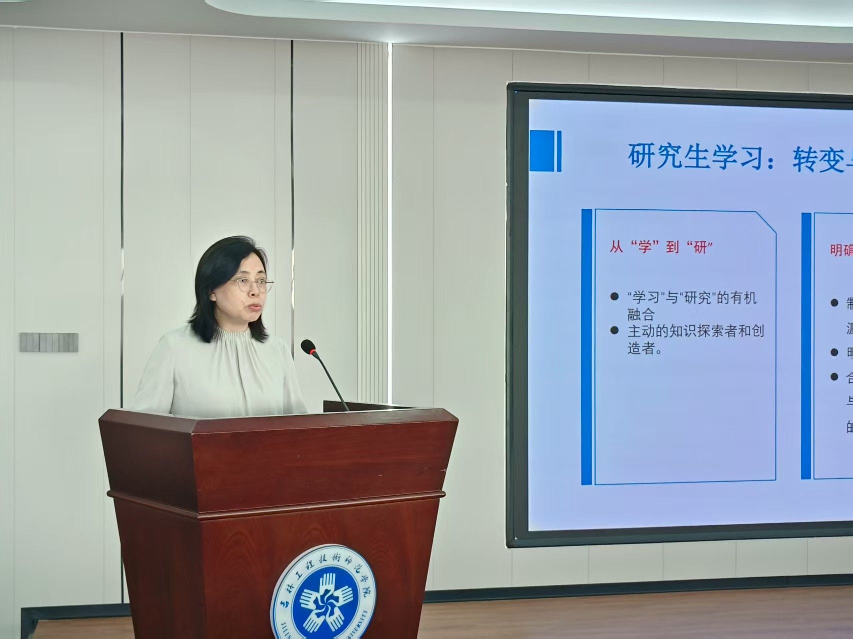 新生代表2025级物流工程与管理专业高雁飞同学发表了入学感想,她表示会明确目标、脚踏实地,积极融入集体生活,以饱满的热情迎接研究生阶段的每一项挑战。