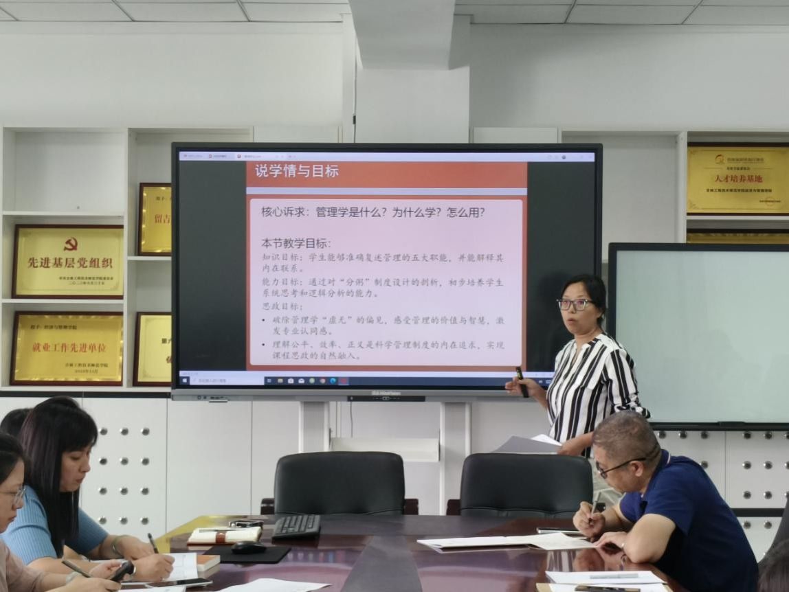 本次试讲训练采用“说课+现场授课+专业点评”的形式。试讲过程中,6位新课教师结合课程定位,展现了精心设计的教学方案。各位教师普遍注重理论与实践的融合,部分教师以企业真实案例为切入点,通过拆解分析引导学生理解知识要点,教学逻辑清晰;还有教师借助数字化教学资源,直观呈现行业前沿流程与操作方法,让抽象的管理理念落地为具体实践内容;另有教师通过案例复盘的方式,带领学生反向推导核心知识模块的关键要素,课堂互动紧凑且富有针对性,充分体现了以学生为中心的教学理念。