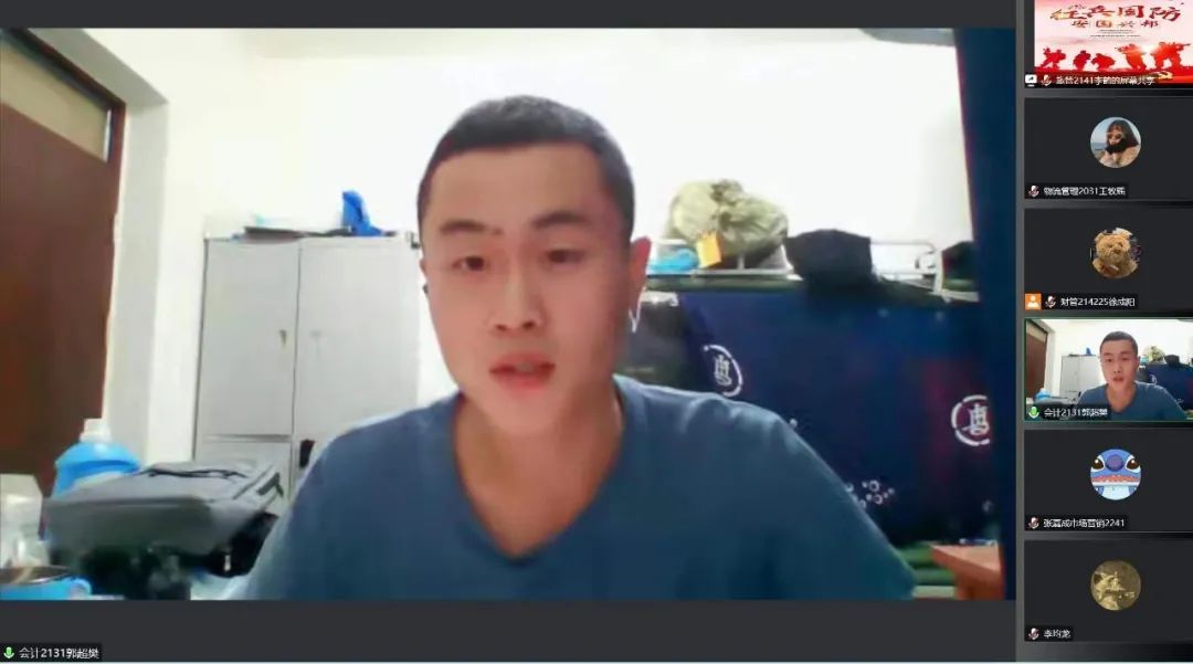 来自会计2131李均龙和会计2131郭超樊分别就自己的军营生活和参军感悟进行了回顾和分享,谈到了军营生涯带给自己的成长,让他们磨炼了自己的意志,有勇气和能力去面对人生的挑战和困难,以自己入伍的经历与收获,鼓励同学们参军入伍、携笔从戎,到军营中体验别样青春。