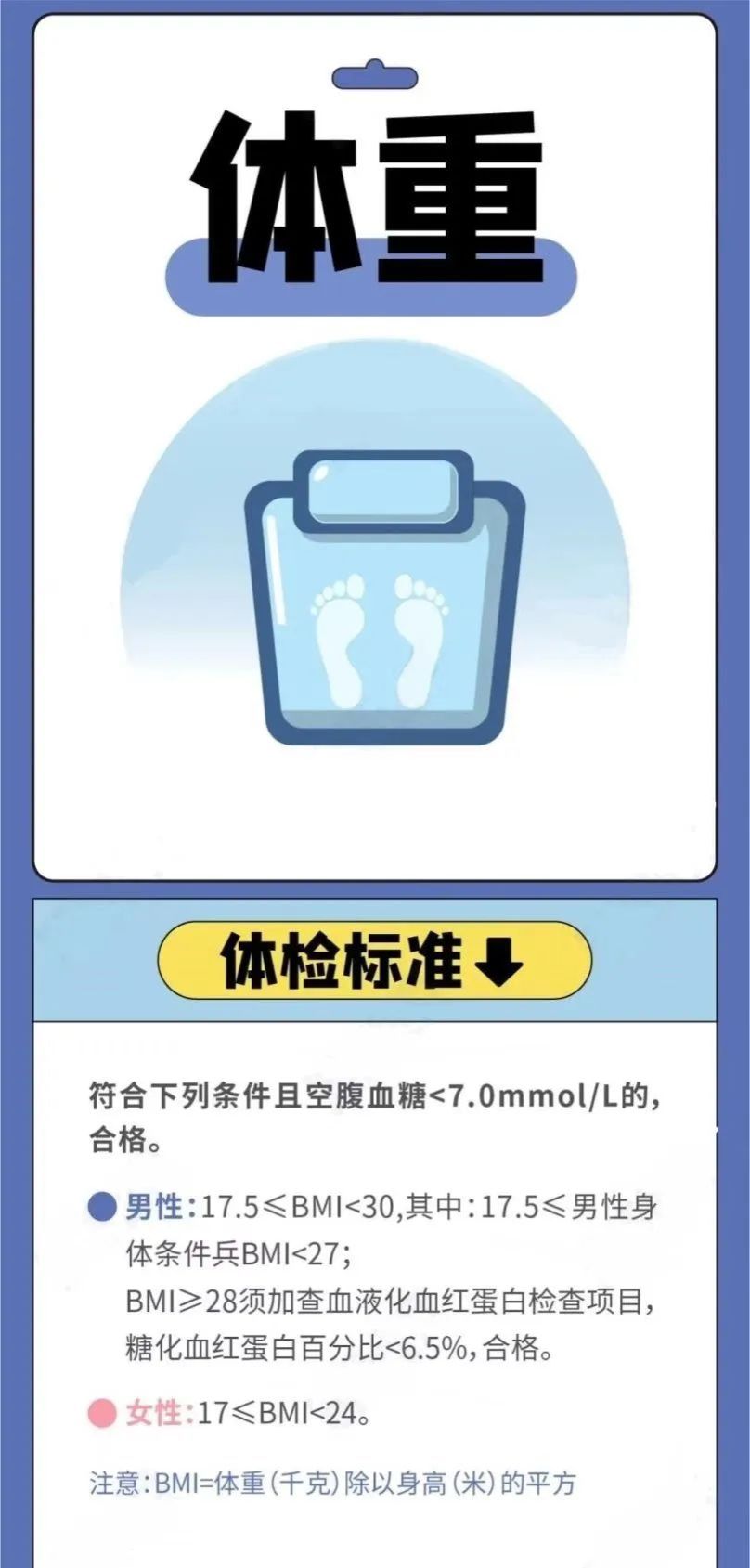 文身瘢痕:面颈部纹身,着军队制式体能训练服其他裸露部位长径超过3cm的纹身,其他部位长径超过10cm的文身,男性纹眉、纹眼线、纹唇;女性纹唇,不合格。