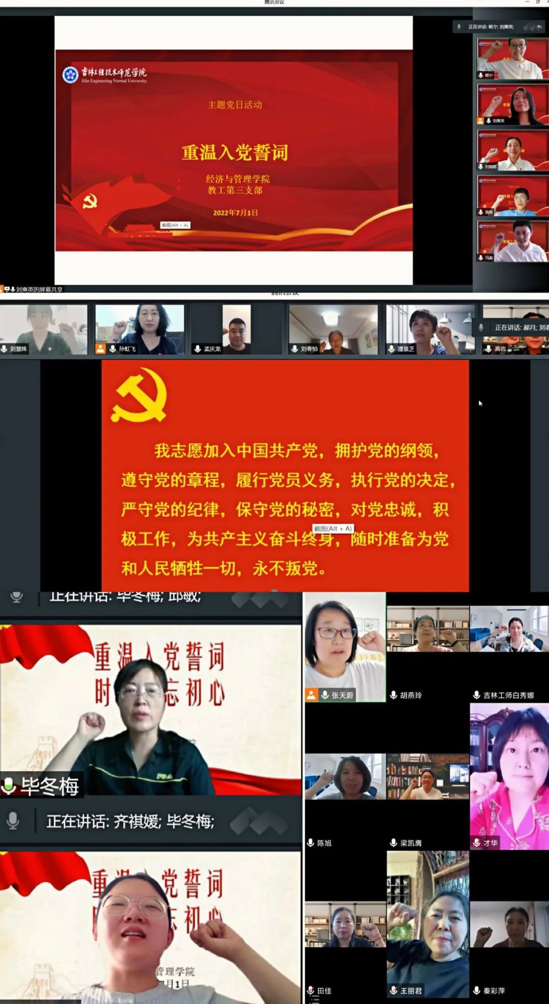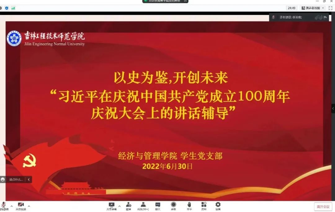 6月30日19时yl23455永利集团学生党支部在线上举办“喜迎二十大,奋进新征程”主题党日活动。学院正处级组织员、国家二级心理咨询师任志宏老师为全体学生党员做“习近平在中国共产党成立100周年大会上的讲话”专题辅导,课后同学们纷纷表示要坚决维护党中央权威和集中统一领导,始终在思想上政治上行动上同以习近平同志为核心的党中央保持高度一致。作为新时代的青年一代,生逢盛世当不负盛世,生逢其时当奋斗其时。要不负时代期望,争做时代先锋,为中华民族的伟大复兴贡献自己的青春和智慧。