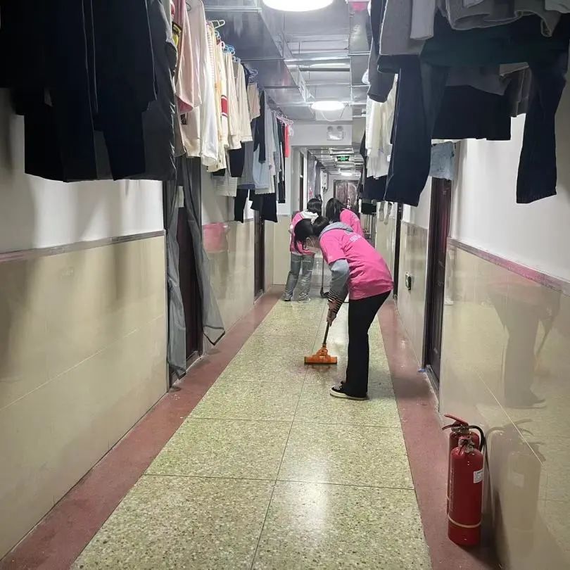 校内志愿服务队主动打扫卫生、清理杂物、搬运学生物品顺利转移,使宿舍环境干净整洁,也降低了火灾隐患。