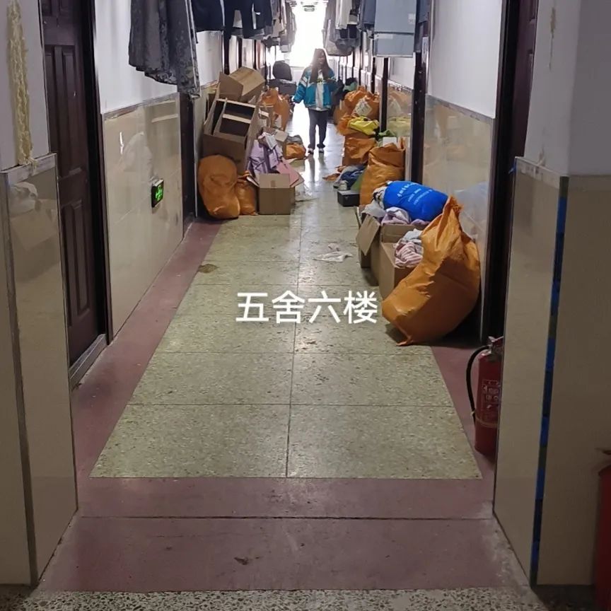 由于宿舍调整,学生宿舍多处楼道内有堆放杂物的现象,不仅影响宿舍的整洁美观,也增加了火灾安全隐患。