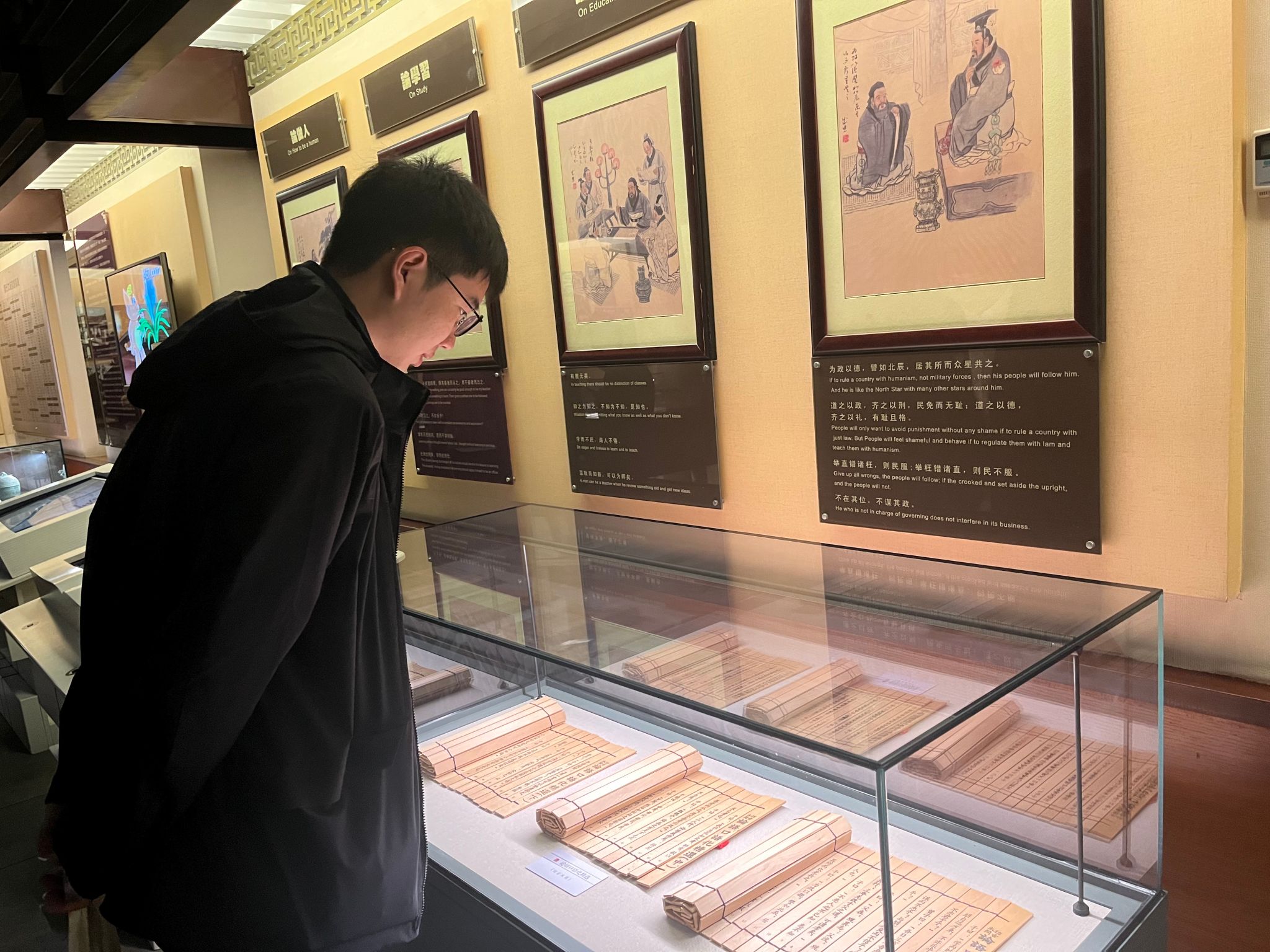 讲座结束后,从古老的儒家经典到精美的文物陈列,从庄重的古建筑到生动的展览讲解,同学们在长春文庙博物馆近距离接触古代文化遗存。通过直观的视觉感受与讲解员的专业解说,同学们深入了解了儒家文化的丰富内涵与发展脉络,仿佛穿越时空,与古人进行了一场跨越千年的对话。